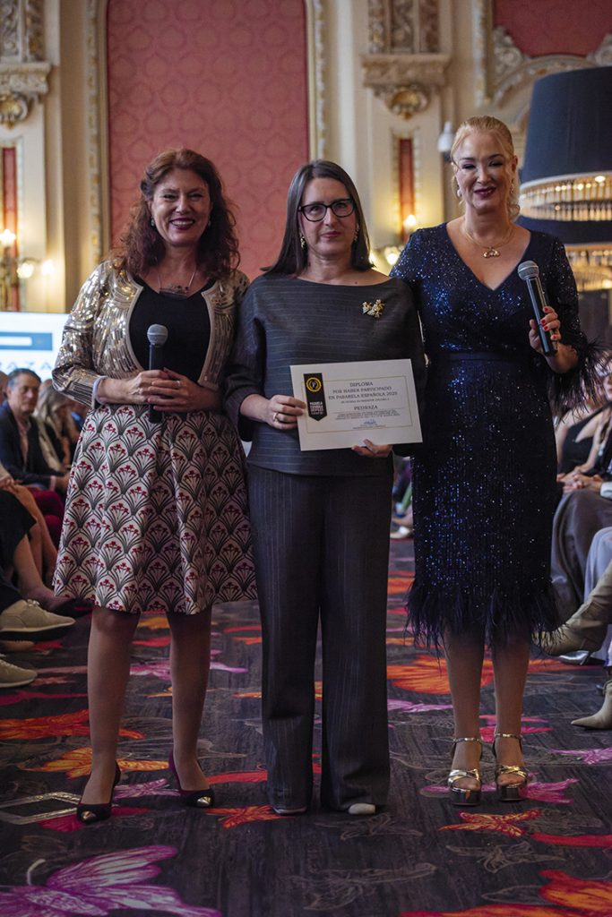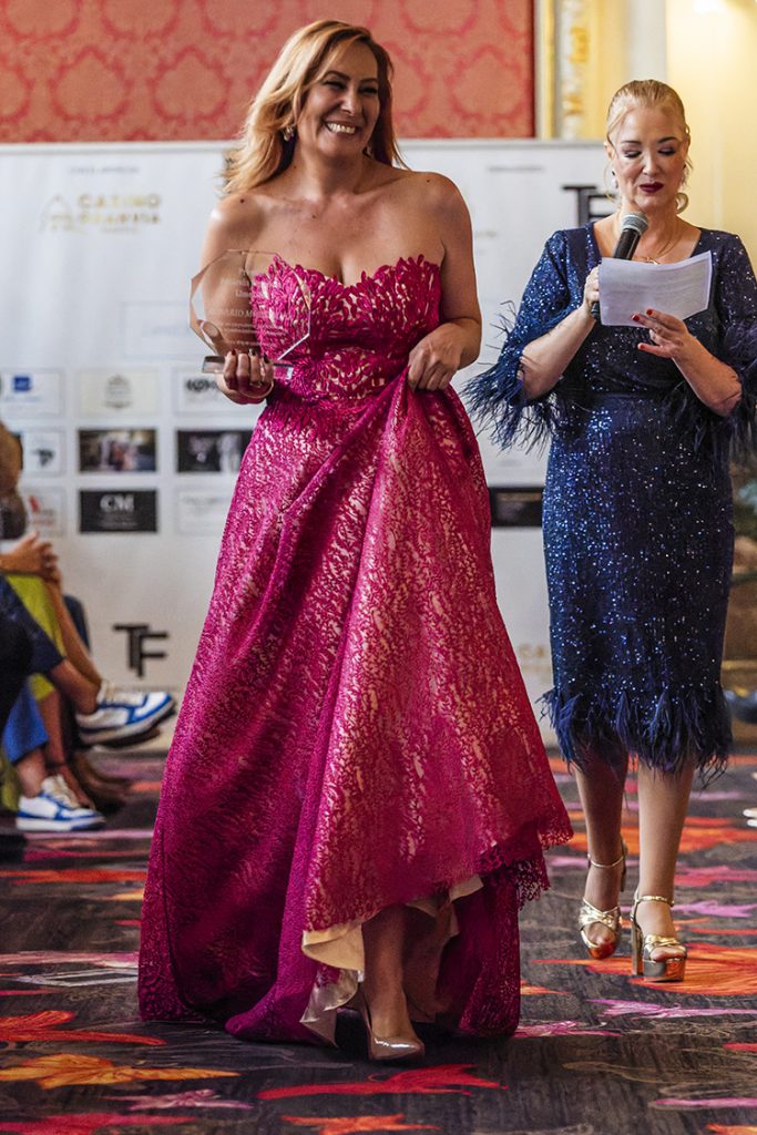 La firma Moda de Nata recibiendo el diploma por su participación en esta edición junto a Susan Villa.