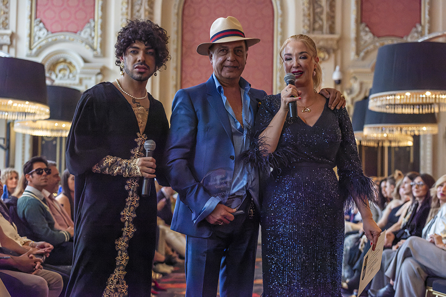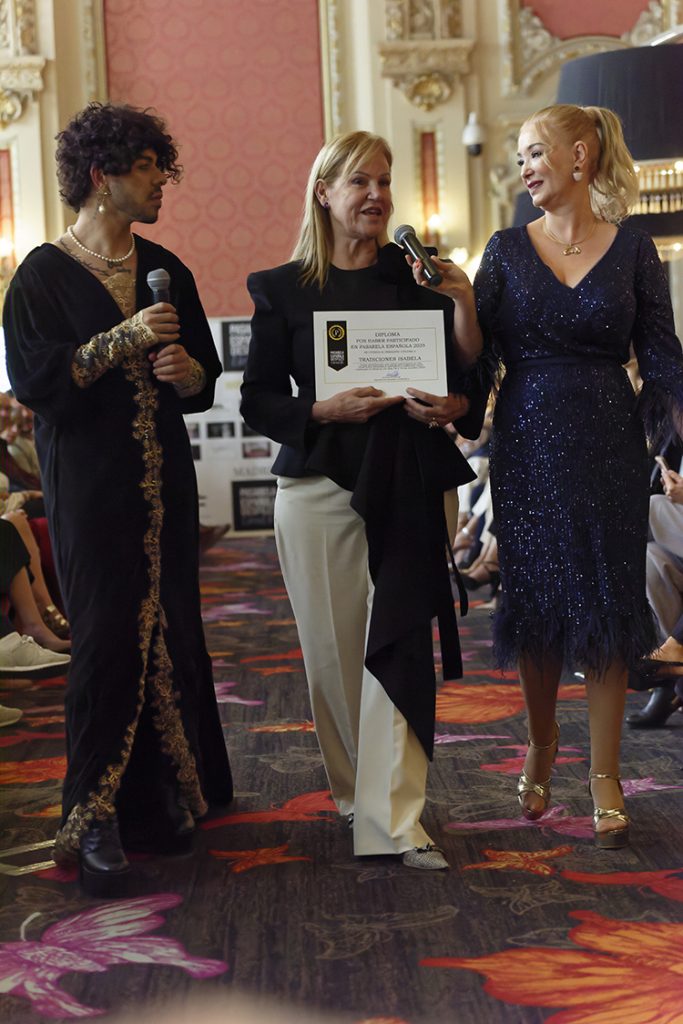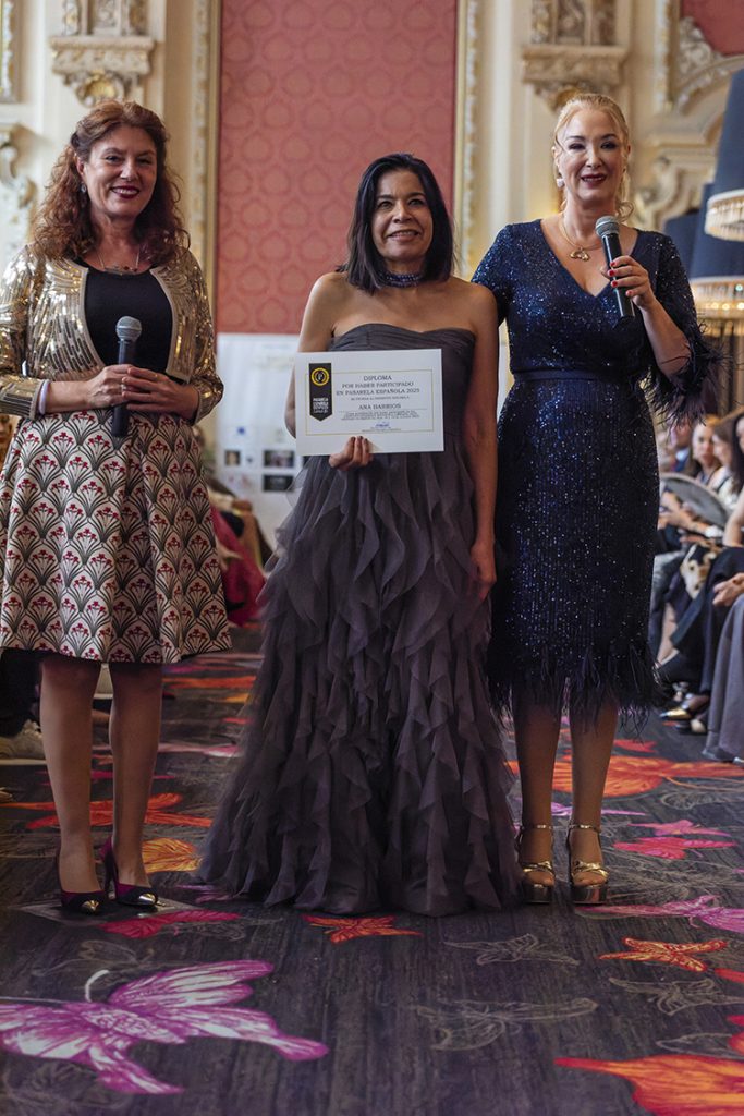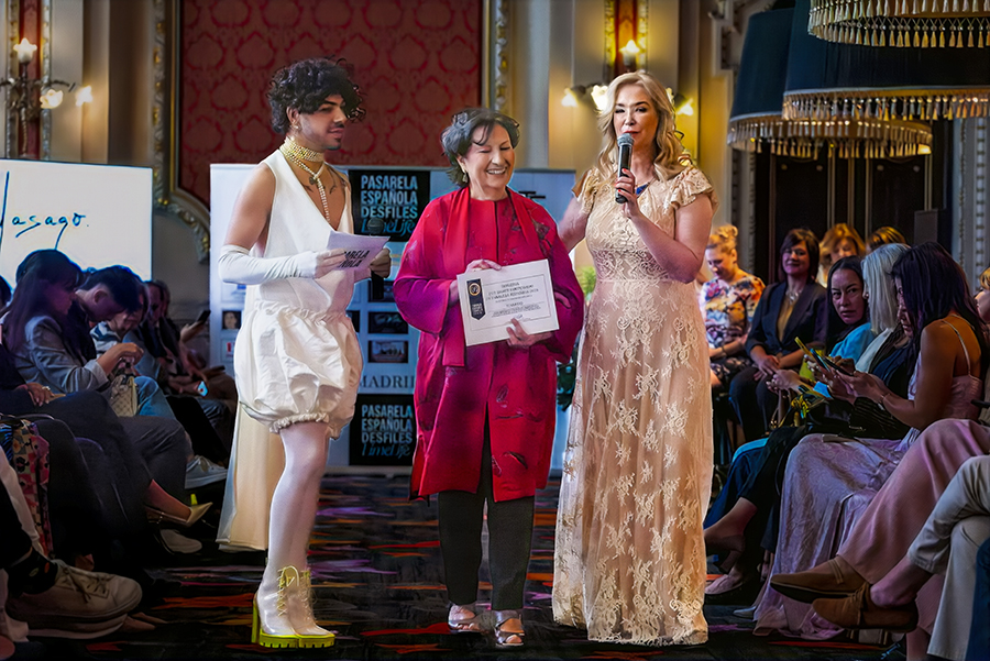 Nuestra querida y admirada Rosario Mohedano recogiendo el premio Pasarela Española LimeLife 2025 a su trayectoria profesional junto a Susan Villa y Steven Vázquez.
