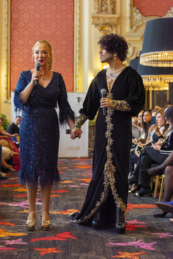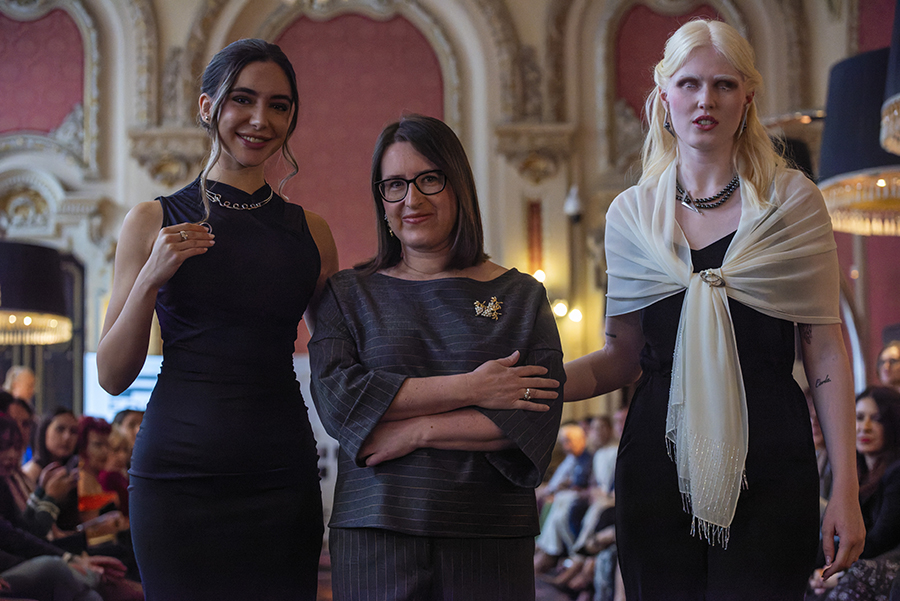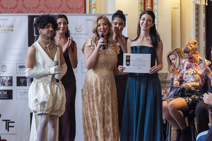 La diseñadora de joyas de autor Ana Barrios junto Susan Villa y Steven Vázquez en Pasarela Española LimeLife 2025